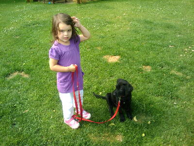 Funny mit 3 Monaten mit "Frauchen" Luana beim Gassigehen im Garten